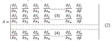 With β the bifurcation parameter. The matrix A can be written in a compact form as