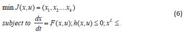 The multiobjective nonlinear model predictive control (MNLMPC) method was first proposed by [24] and used by [25]. This method is rigorous and it does not involve the use of weighting functions not does it impose additional parameters or additional constraints on the problem unlike the weighted function or the epsilon correction method [26]. For a problem that is posed as