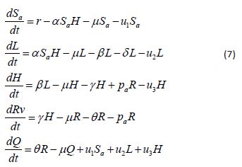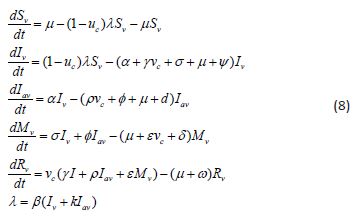 • γ, ε, ρ the rates of detection and rehabilitation of individuals in classes Iv, Mv, Iav