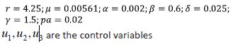 and the parameter values are