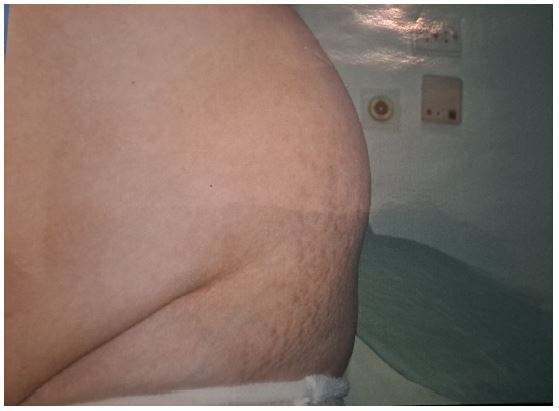 This is an attempt to present a 51-year-old female patient with painful lump in the left lumbar region suspended over the cervical ridge edge in standing position. Hernia proved to be reponible, and confirmed by ultrasound (Figures 1,2).