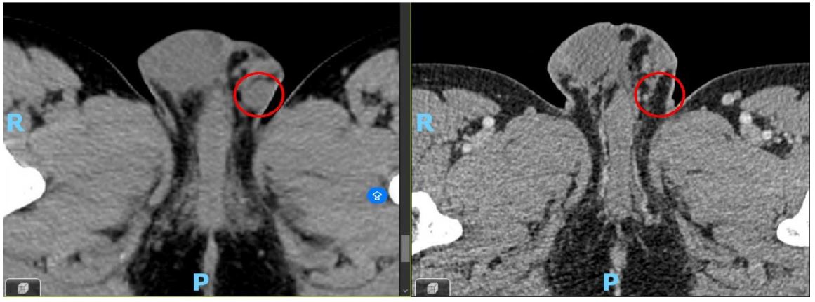 Clinically, testicular metastases may present as painless testicular masses, often discovered incidentally during staging investigations or follow-up imaging [3]. However, in some cases, they remain asymptomatic until autopsy. The mechanism of testicular metastasis is still not fully clarified, though hematogenous dissemination appears to be the primary route, given the vascular nature of lung carcinoma [4]. Other proposed pathways include retrograde lymphatic spread or direct extension in cases with extensive pelvic involvement [2].