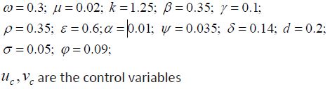 • γ, ε, ρ the rates of detection and rehabilitation of individuals in classes Iv, Mv, Iav