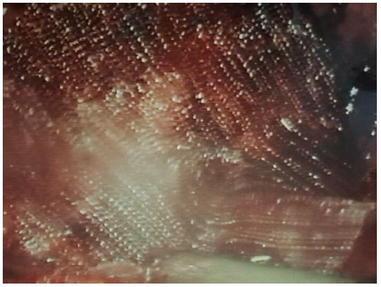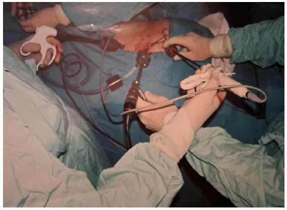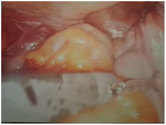 Laparoscopy was performed in general anaesthesia, accessed the retroperitoneal area, de-prepared hernial sack, and closed the muscular defect with PTFE screen. Operative surgery was concluded with the reparation of peritoneum (Figures 3-5).