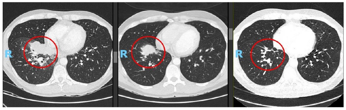 Non-Small Cell Lung Cancer (NSCLC), particularly adenocarcinoma, predominates among nonsmokers or those with minimal smoking history, as exemplified by our patient. In younger patients, this subtype is frequently associated with actionable genetic alterations, requiring comprehensive molecular profiling. Beyond PD-L1 assessment for immunotherapy, evaluating EGFR, ALK, ROS1, and performing Next-Generation Sequencing (NGS) are critical, as demonstrated by the identification of a KIF5B(15)–RET(12) fusion in our case [7].