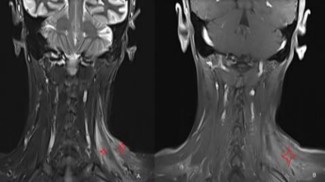 A 49-year-old female patient applied to the medical oncology unit in August 2019 due to a mass in her left breast. After the necessary tests, invasive breast cancer was detected in the biopsy, and breast-conserving surgery was performed. Afterwards, 3 cycles of docetaxel + cyclophosphamide chemotherapy and a total of 60 Gy radiotherapy in 30 fractions were given. Recurrence occurred in the same area in September 2020. After 4 cycles of doxorubicin + cyclophosphamide and 12 cycles of paclitaxel, modified radical mastectomy was performed, and oral capecitabine was started. Approximately one year later, recurrence was detected in the cervical and supraclavicular regions, and 45 Gy radiotherapy in 20 fractions and 6 cycles of gemcitabine were applied. Four weeks after the last chemotherapy, redness, pain, and swelling developed in the left supraclavicular region. In the evaluation made by medical oncology, weakness was detected in the left shoulder and upper extremity. She was referred to our pain clinic for the preliminary diagnosis of radiation-induced brachial plexopathy and pain palliation. On examination, neck deviation to the left, increased left shoulder height, and Sternocleidomastoid (SCM) muscle contracture were detected. Right neck rotation limitation, severe pain on palpation of the neck region, and color change were observed. In addition, there was moderate loss of strength in shoulder abduction and arm extension on muscle strength examination (Figure 1). McGill pain score was 92, and Visual Analog Scale (VAS) score was 9 points. In our Ultrasonography (USG) evaluation, we observed hyperechogenicity in the SCM, trapezius, and scalene muscles (Figure 2). In magnetic resonance imaging, we observed hyperintensity in the T2 phase and contrast enhancement in T1 in the same muscle groups (Figure 3). Gemcitabine treatment was stopped with the diagnosis of gemcitabine-associated radiation recall myositis. We started the treatment with drugs such as prednisolone, ibuprofen, and paracetamol + tramadol. However, despite 5 weeks of treatment, the symptoms did not regress. A 70% loss in sleep quality and daily life activities was observed due to pain. We applied dexamethasone and lidocaine to the SCM, trapezius, and scalene muscles under USG guidance. VAS decreased from 9 to 7 within a week. Afterwards, 100 IU abobotulinum toxin A was applied to the same muscles [8]. After one month, the VAS score decreased to 2. The need for analgesics decreased to 2 tablets of ibuprofen in the last month. The contracture almost completely resolved (Figure 4). The McGill score was measured as 20. Written informed consent was obtained from the patient for publication of this case report and accompanying images.